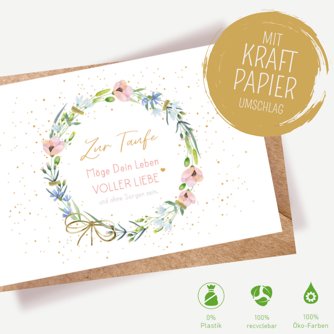 Green Karma Doppelkarte - Blütenkranz zur Taufe