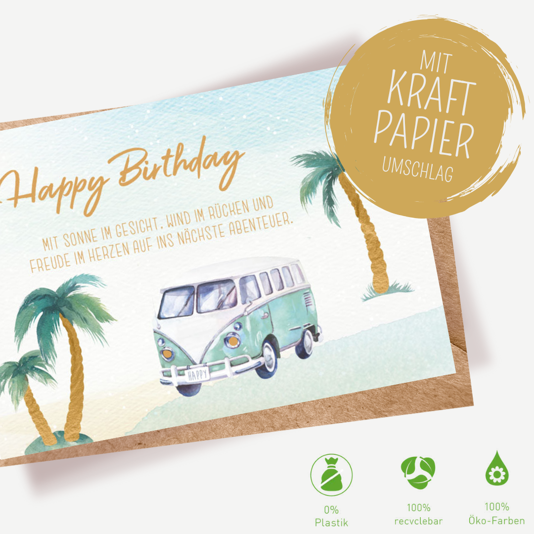 Green Karma Doppelkarte - Bulli an goldenen Palmen